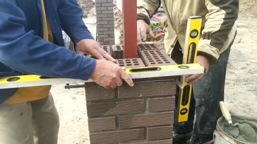 Кладка кирпичного столба в четыре руки