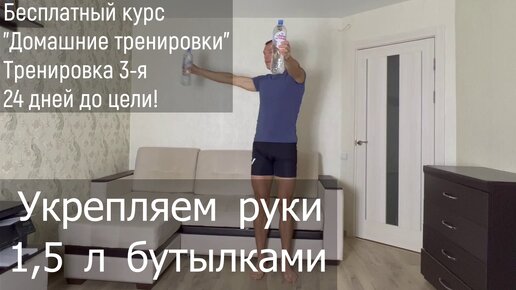 Домашние тренировки. Бесплатный курс. Тренировка 3-я. 24 дня до цели. Укрепляем руки 1,5 л бутылками.