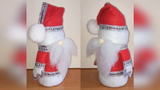 Дед мороз в подарок с конфетами из баночки и новогодней шапки, легко и просто сделать.