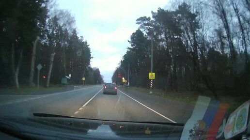 Серый автомобиль с грязным нечитаемым номером пересекает сплошную линию в Красном Бору.