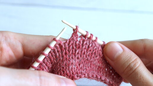 Показываю, как вязать спицами 2 петли вместе лицевой с наклоном влево