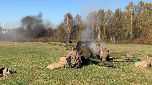 Пушка ЗИС-2 прикрывает бронеавтомобиль БА-20