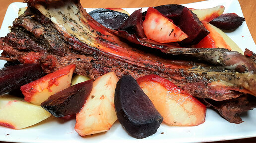 Запечённая баранина с овощами. Бараньи рёбрышки запечённые.