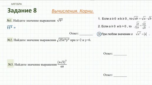 Вычисления. Корни. Разбор задания №8 ОГЭ