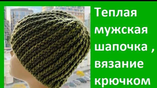 Теплая МУЖСКАЯ Шапочка , Вязание КРЮЧКОМ , crochet men's hat ( Ш № 208)