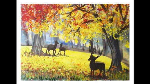 Как нарисовать КРАСИВЫЙ ПЕЙЗАЖ гуашью. "ОСЕНЬ". Поэтапное рисование для начинающих.