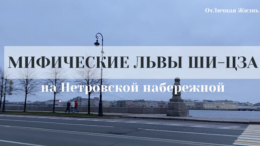 Мифические львы Ши-Цза на Петровской набережной Петербурга