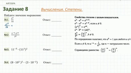 Вычисления. Степени. Разбор здания №8 ОГЭ