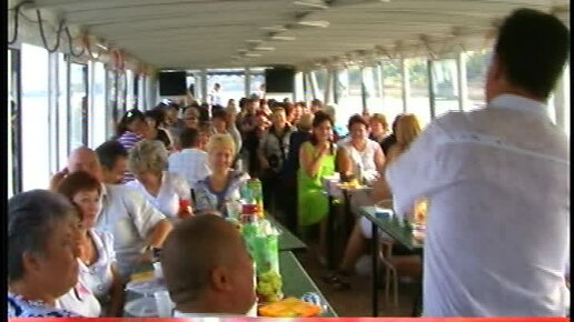 Народ культурно и весело отдыхает на теплоходе слушая татарские песни Минегали Хуснутдинова.