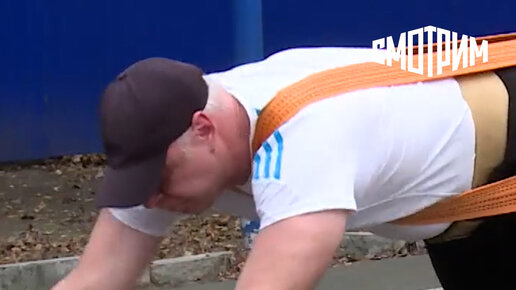 Силач из Осетии сдвинул два пожарных автомобиля