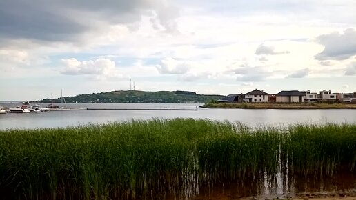 Волга и заросли рогоза в Старом Аракчино. Прямо напротив - Храм всех религий.