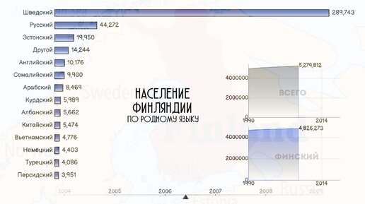 Население Финляндии по родному языку 1990–2020.Национальный состав. Статистика.Инфографика