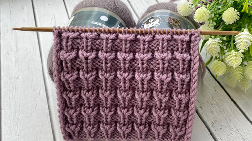 Объемный рельефный узор спицами для шапок или свитеров.