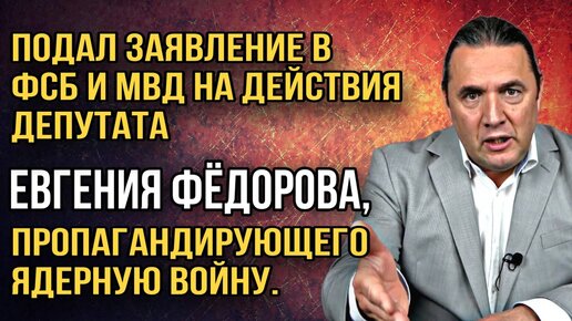 Подал заявление в ФСБ и МВД на депутата Евгения Федорова, пропагандирующего ядерную войну.
