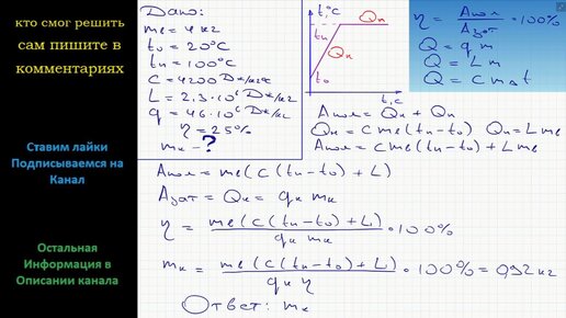 Физика Воду массой 4 кг, взятую при температуре 20 С, нагрели до кипения и полностью испарили. Определите, сколько керосина для этого