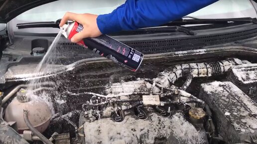 Эффективная очистка двигателя автомобиля. Аэрозольный пенный очиститель двигателя MobiCAR.