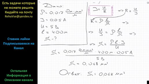 Физика Какова площадь поперечного сечения медной проволоки, сила тока в которой 0,05 А при напряжении 5 В? Длина проволоки 400 м.