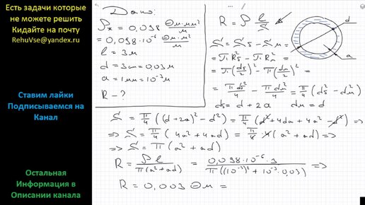 Физика Каково сопротивление железной трубки длиной l = 3 м, если внутренний диаметр трубки d = 3 см, а толщина ее стенок a 1мм?