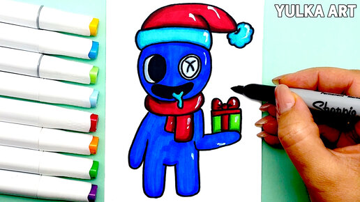 Как нарисовать СИНЕГО из радужных друзей в Роблокс новогодней шапке. Рисунки на Новый Год 2023