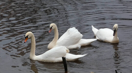 Повседневные осенние будни белых лебедей! Два веселых подросших лебеденка и солидная мама белая лебедь!