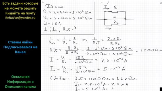 Физика Резисторы, сопротивление которых 2 и 3 кОм соединены параллельно и подключены к источнику постоянного напряжения 15 В Найдите силу