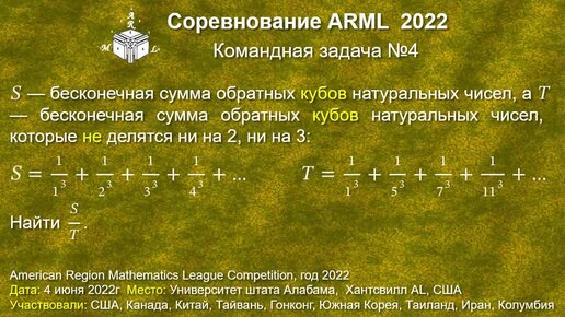 Найти отношение суммы обратных кубов всех натуральных чисел к сумме обратных кубов натуральных чисел, не кратных ни двум ни трем.