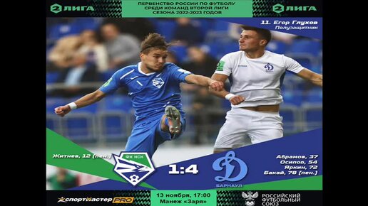 ФК Новосибирск с разгромным счётом проиграл Динамо (Барнаул) (13.11.2022)