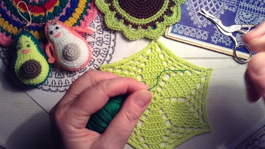 Вяжем шестиугольный цветочный мотив для пледа, скатерти, салфетки по схеме крючком