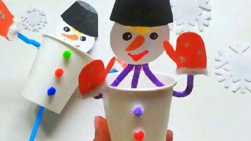 Далее: СНЕГОВИЧОК- ЛЫЖНИК☃️ Понадобились: - шишка - Теннисный шарик - Кусочек Втулки - Пряжа - Палочки от мороженого - Краски Как вам Снеговичок?