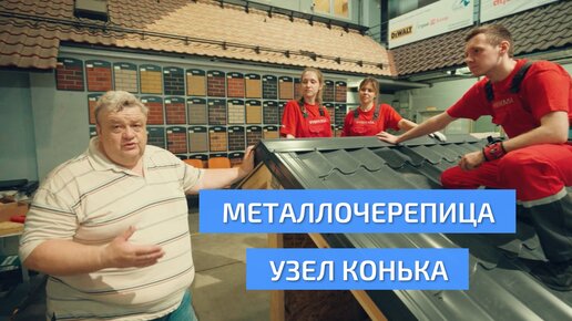 Узел конька на кровле из металлочерепицы. Фрагмент фильма о монтаже металлочерепицы. УНИКМА.