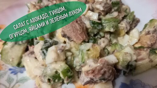 Очень вкусный и полезный салат с авокадо, тунцом, огурцом, яйцами и зелёным луком