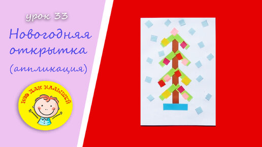 Как сделать НОВОГОДНЮЮ ОТКРЫТКУ. УРОК 33. Тема: "новогодняя открытка"- аппликация.