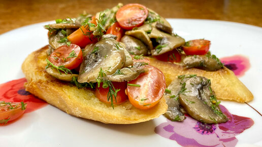 Брускетта с грибами и помидорами. Идеальная закуска для новогоднего стола #новогодниепраздники #новогоднийсалат #новыйгод #новогоднийстол #закускинапраздник #закускирецепты #рецептынаужин #брускетта