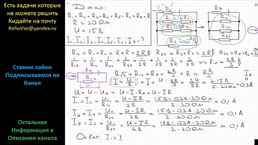 Физика Найдите силу тока в каждом из одинаковых резисторов (рис.) сопротивлением по 30 Ом, если напряжение источника тока 15 В