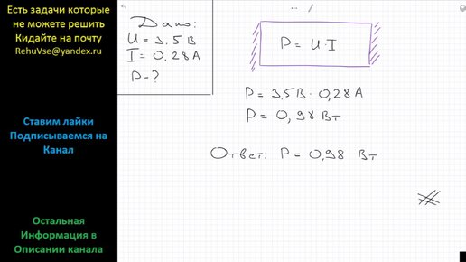 Физика На цоколе лампы указано: «3,5 В; 0,28 А». На какую мощность рассчитана лампа?