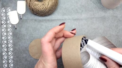 Далее: Взяла втулки и красную ткань, чтобы сделать новогодние салфетницы