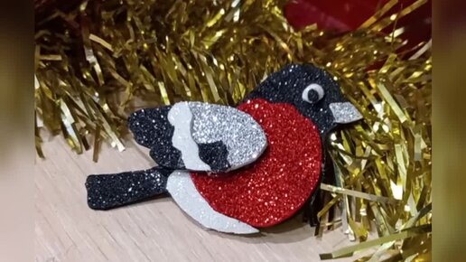 Снегирь из глитерного фоамирана. Брошка. Ёлочная игрушка