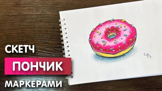 Как нарисовать пончик карандашом и скетч маркерами | Милый рисунок поэтапно и легко