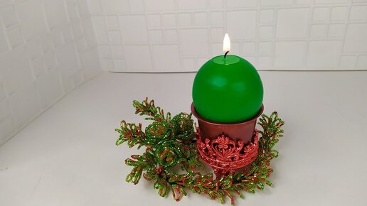 Работы из бисера. Мастер класс. Веточки из бисера.2 часть. Новогодний декор.Подсвечник своими руками