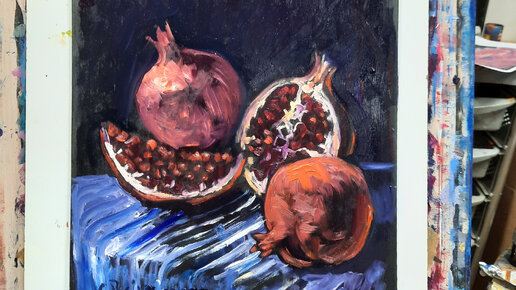 Пишем натюрморт с плодами граната меньше чем за 20 минут!