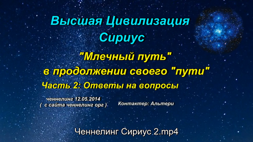 Ченнелинг Высшая Цивилизация Сириус "Млечный путь" в продолжении своего пути". Часть 2: Ответы на вопросы 12.05.2014