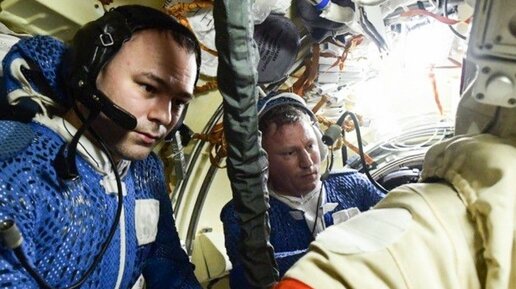 Сергей Прокопьев и Дмитрий Петелин готовят перенос радиатора — который нужен для экспериментов — с одного модуля на другой.