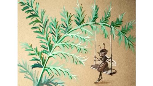 Мушка на качелях. Рисунок гуашью на крафтовой бумаге.