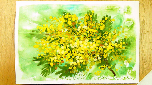 Как нарисовать Мимозу легко, поэтапно, гуашью. Нетрадиционное рисование цветов для начинающих.
