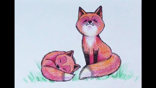 Как нарисовать милую лисичку с лисенком легко, поэтапно, карандашом. Подробный видео урок.