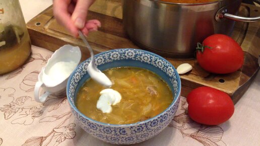 Показываю, какой густоты получились щи без картошки, но с мукой