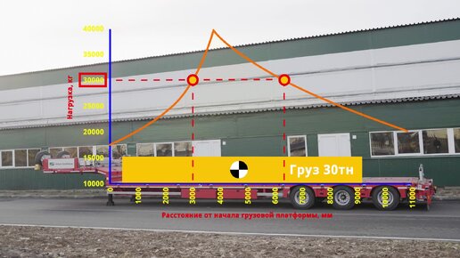 Размещение груза на платформе полуприцепа Тверьстроймаш
