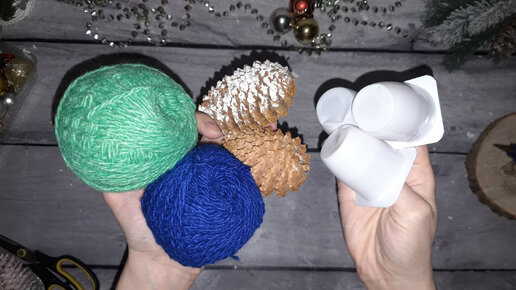 КРАСОТА ИЗ ПРЯЖИ и НИТОК / 2 стаканчика от йогурта и остатки пряжи, и получается Новогодняя Красота / Новогодние поделки из Пряжи и ниток \