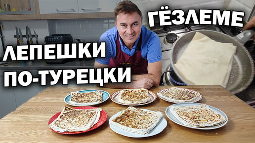 Турецкие лепешки гёзлеме на сковороде с сыром и шпинатом