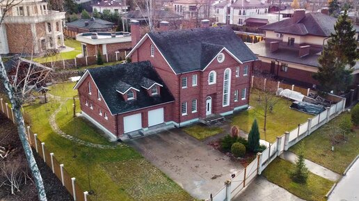 Кирпичный дом в Английском стиле на красивом участке с прудом и баней